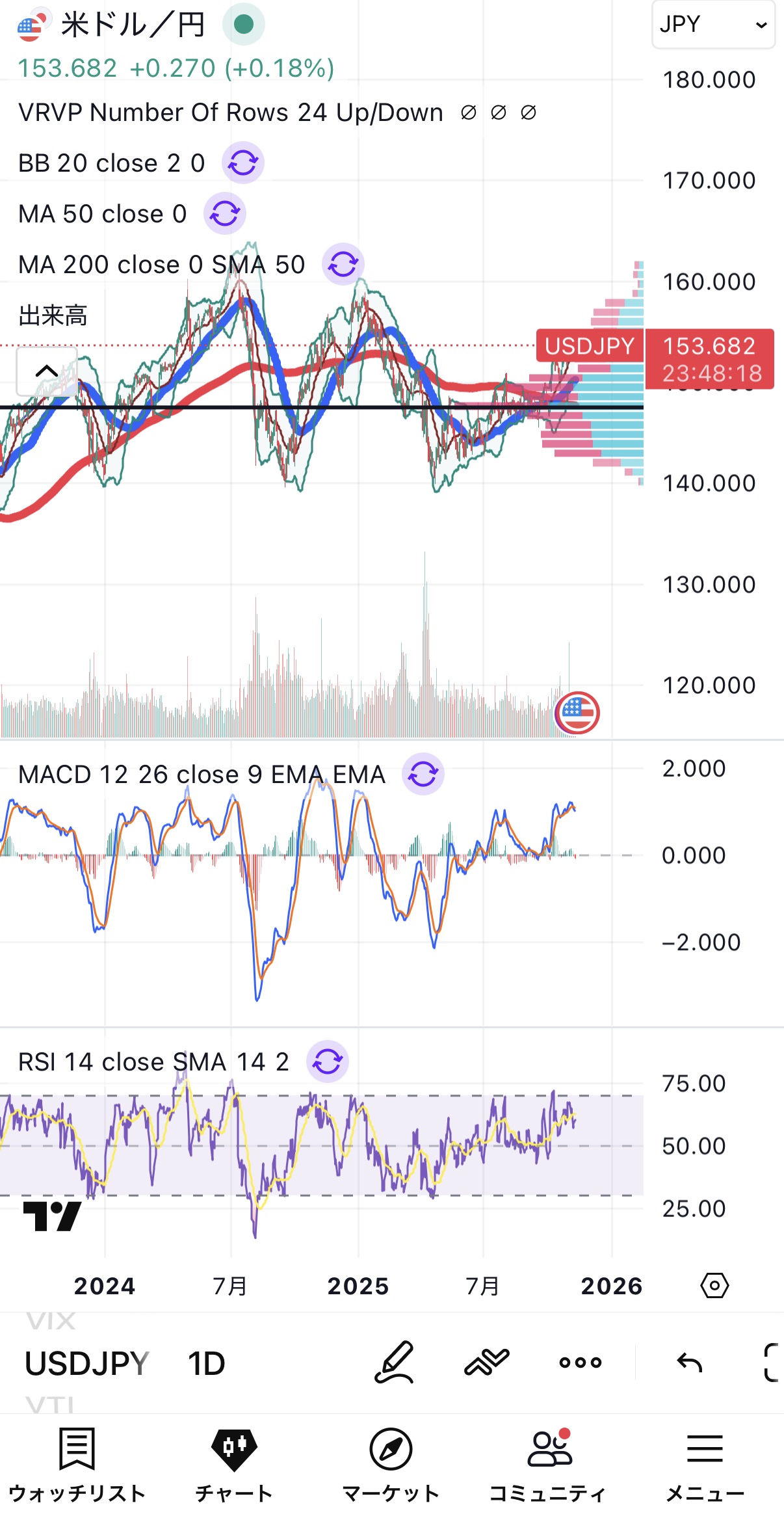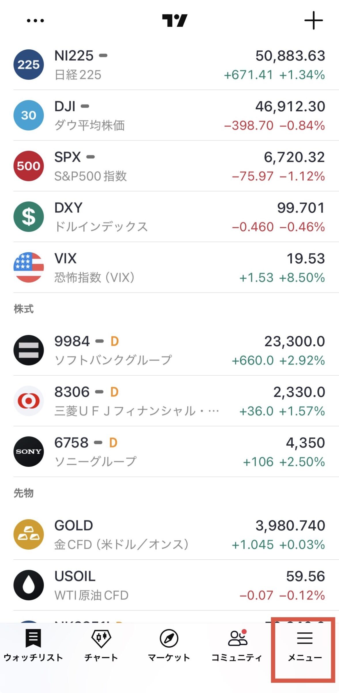 いくつもの証券会社のツールを使い分ける必要がなく、TradingView一つでチェックしたいチャートをすべて管理できるため、日々の経済状況チェックが格段に楽になります。