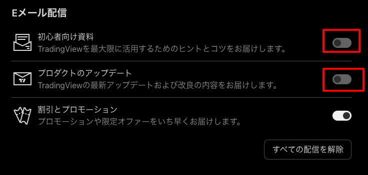 「初心者向け資料」と「プロダクトのアップデート」は、オフでOKです。