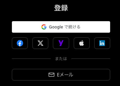 - Google、Facebook、X(旧Twitter)、Yahoo!、Appleなどの既存アカウントで連携登録