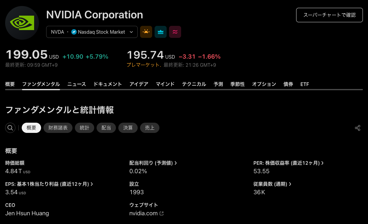TradingViewはチャート分析ツールですが、ファンダメンタルズ分析機能も充実しています。
