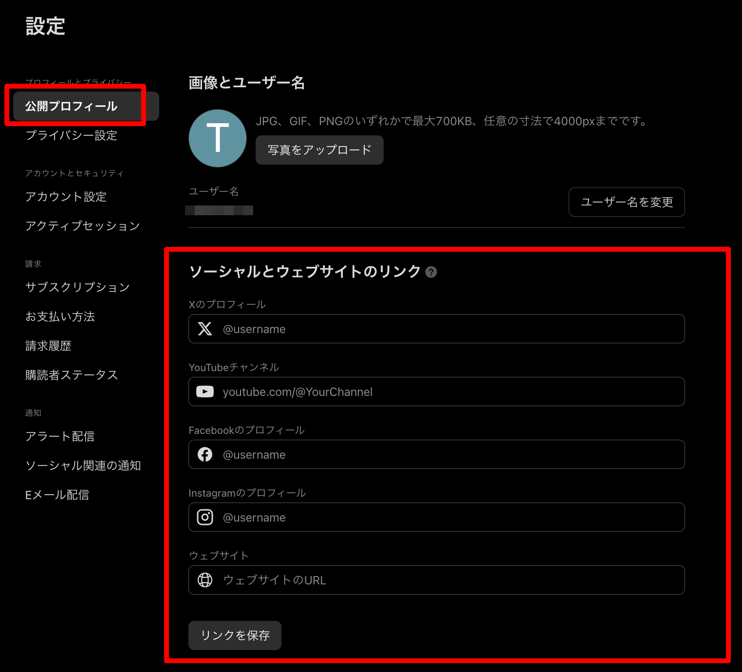 - SNSリンク: TwitterやYouTubeチャンネルを持っている人はここに紐付けが可能です。