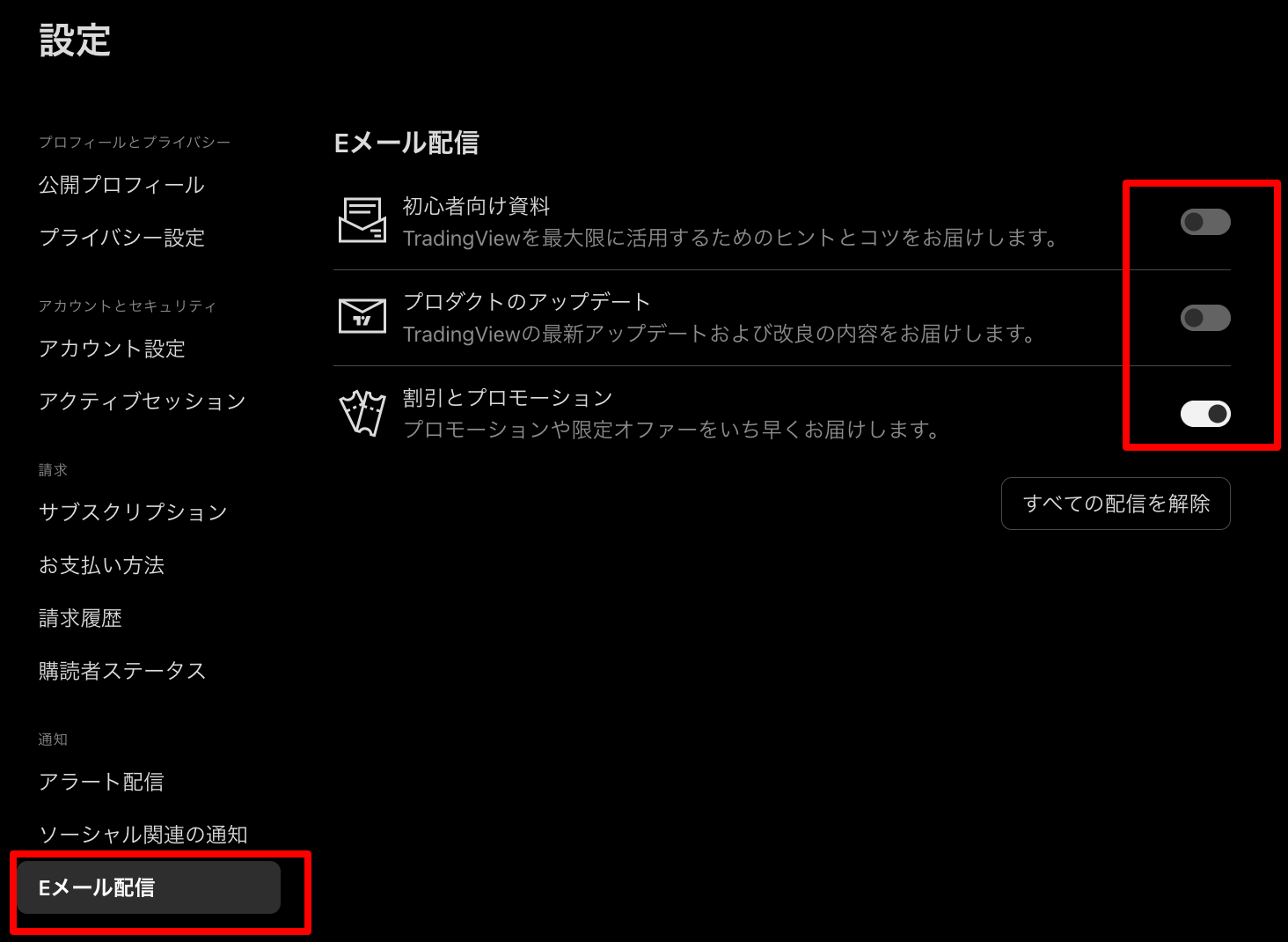ただし、有料プランへのアップグレード割引情報などが欲しい場合は、「割引とプロモーション」の通知だけオンにしておくのをオススメします!