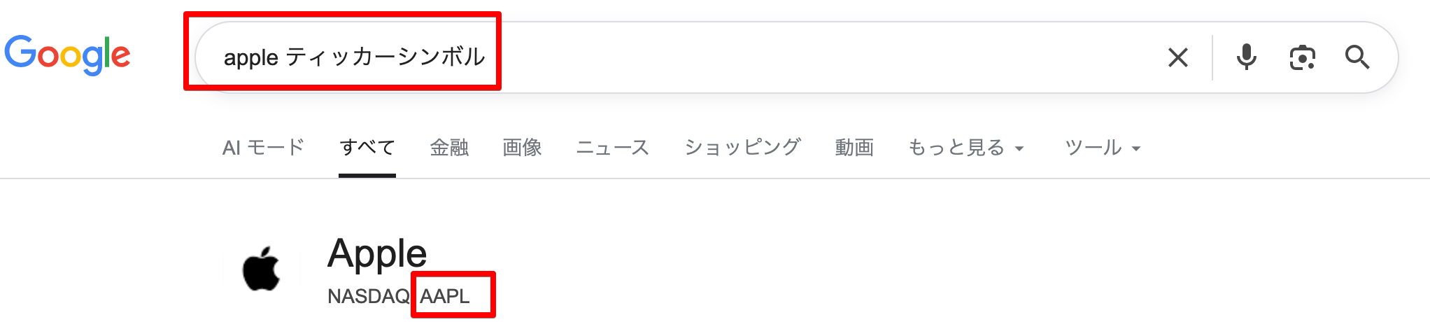 「ティッカーがわからない!」という場合は、Google検索で「〇〇(会社名) ティッカー」と検索すればすぐに出てきます。