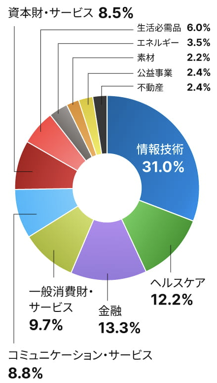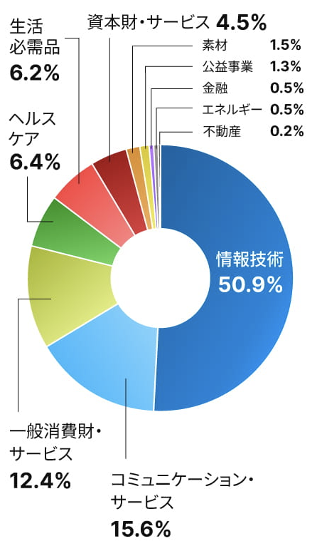 ITと通信で全体の約3分の2を占める「ハイテク偏重型」の指数です。