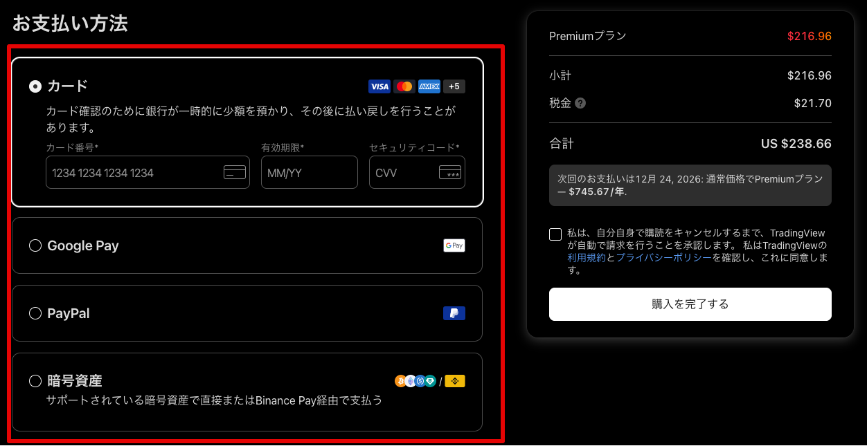 トレーディングビューが大々的にセールを行うのは1年でもこの期間だけ。長期的にトレーディングビューを使う予定の方はこの期間に有料プランを契約するのが最もお得です!