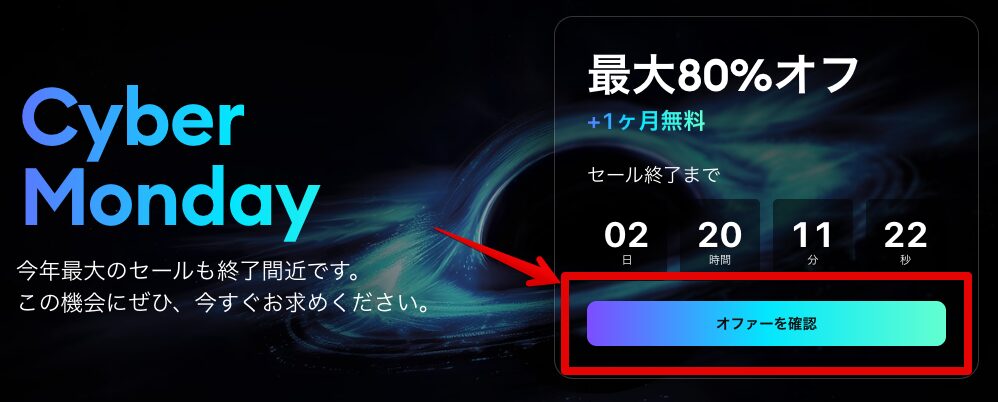 「1年で最も安くなる」+「1カ月無料」のサイバーマンデーで契約するのが一番お得です!