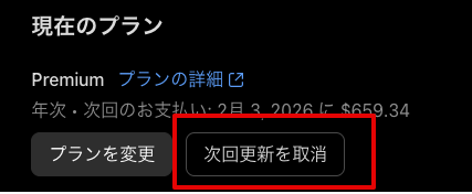 「アイコン」→「設定」→「サブスプリクション」→「次回更新を取消」をクリックすると、自動更新がOFFになります。