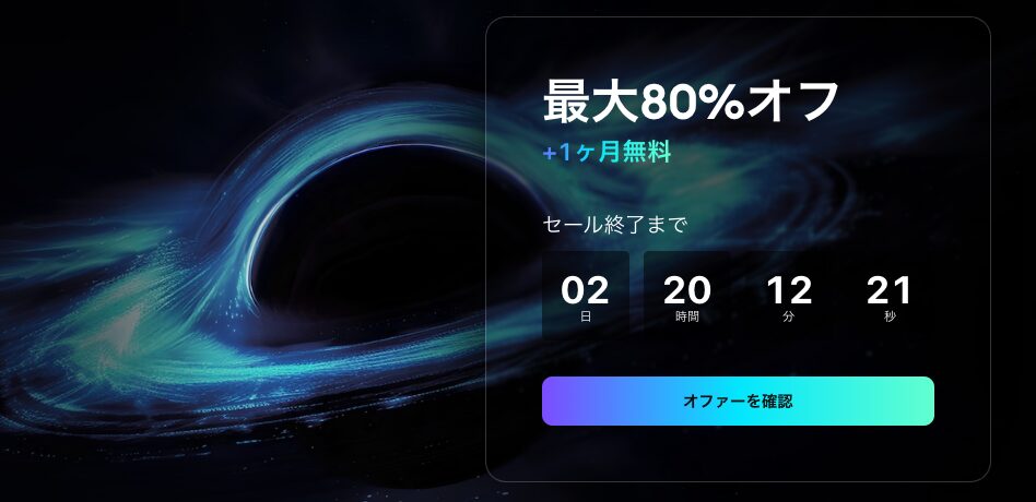 - 最大80% OFF + 1ヶ月無料の1年で最もオトクなセール